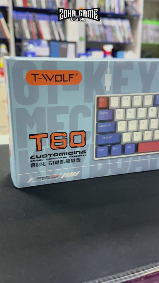 Teclado Mecánico T-Wolf T60 60% RGB Azul-Blanco - Switches Azules Anti-Ghosting USB-C