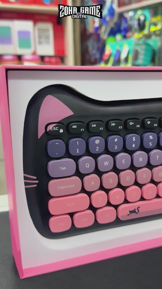 Combo Teclado Mouse Inalámbrico GEEZER Cat Series - 84 Teclas 2.4G USB Diseño Gatito