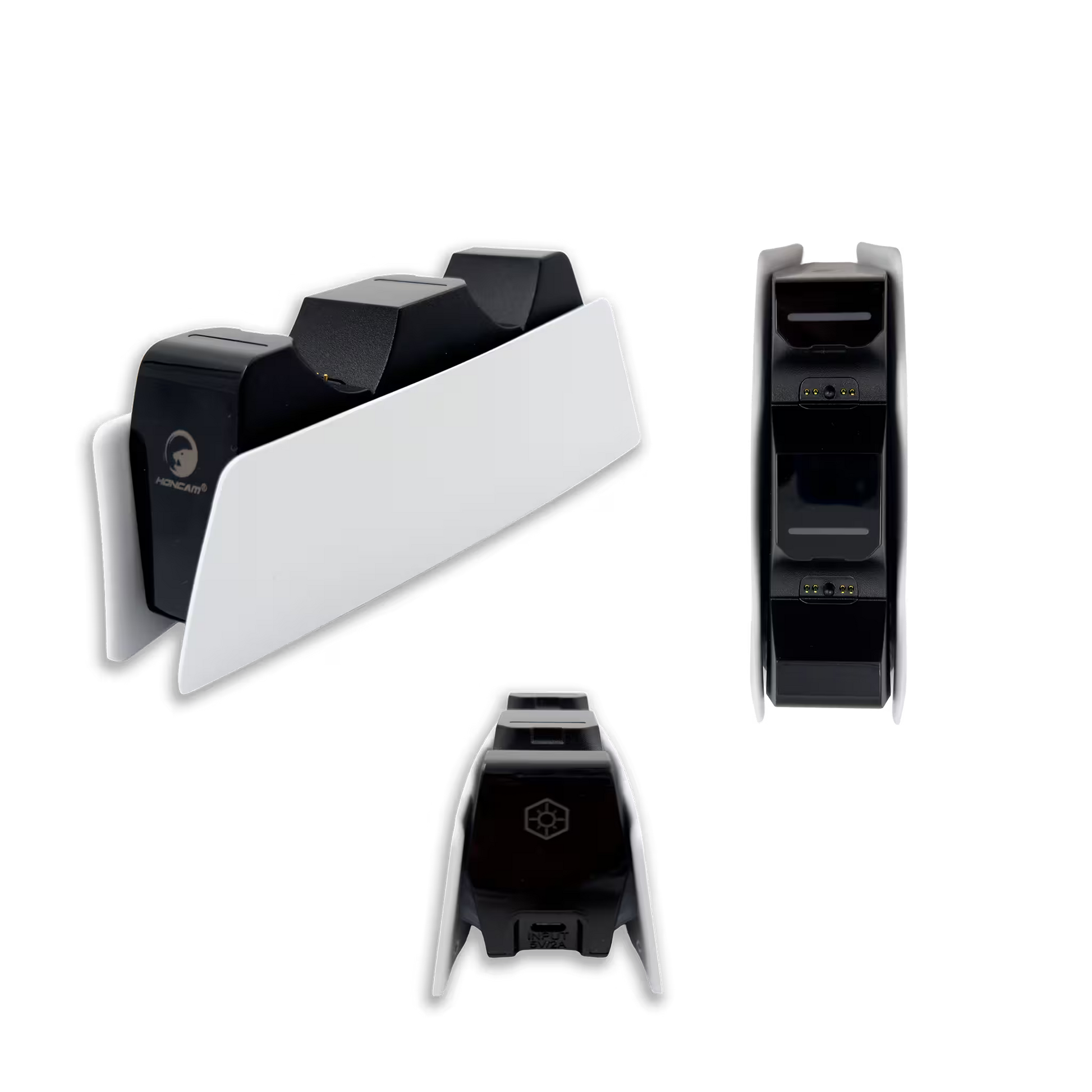 Esta base de carga HONCAM está diseñada para cargar hasta dos controles DualSense o DualSense Edge simultáneamente con la máxima seguridad y velocidad.