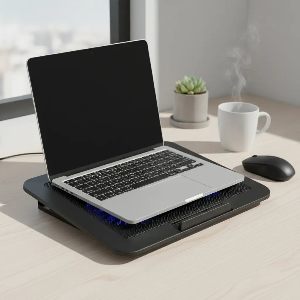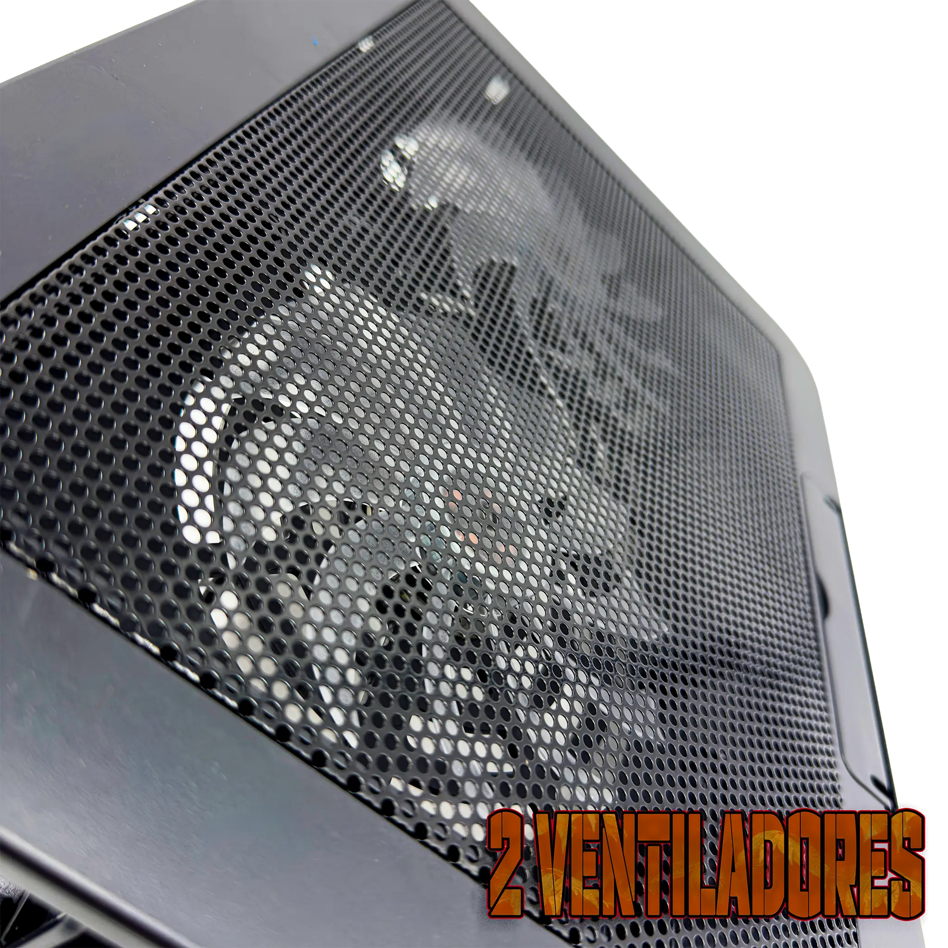 Doble Ventilador de Alto Rendimiento: Cuenta con dos potentes ventiladores de 140 mm que generan un flujo de aire robusto (59VCFM máximo) para enfriar el portátil de manera uniforme y eficaz.