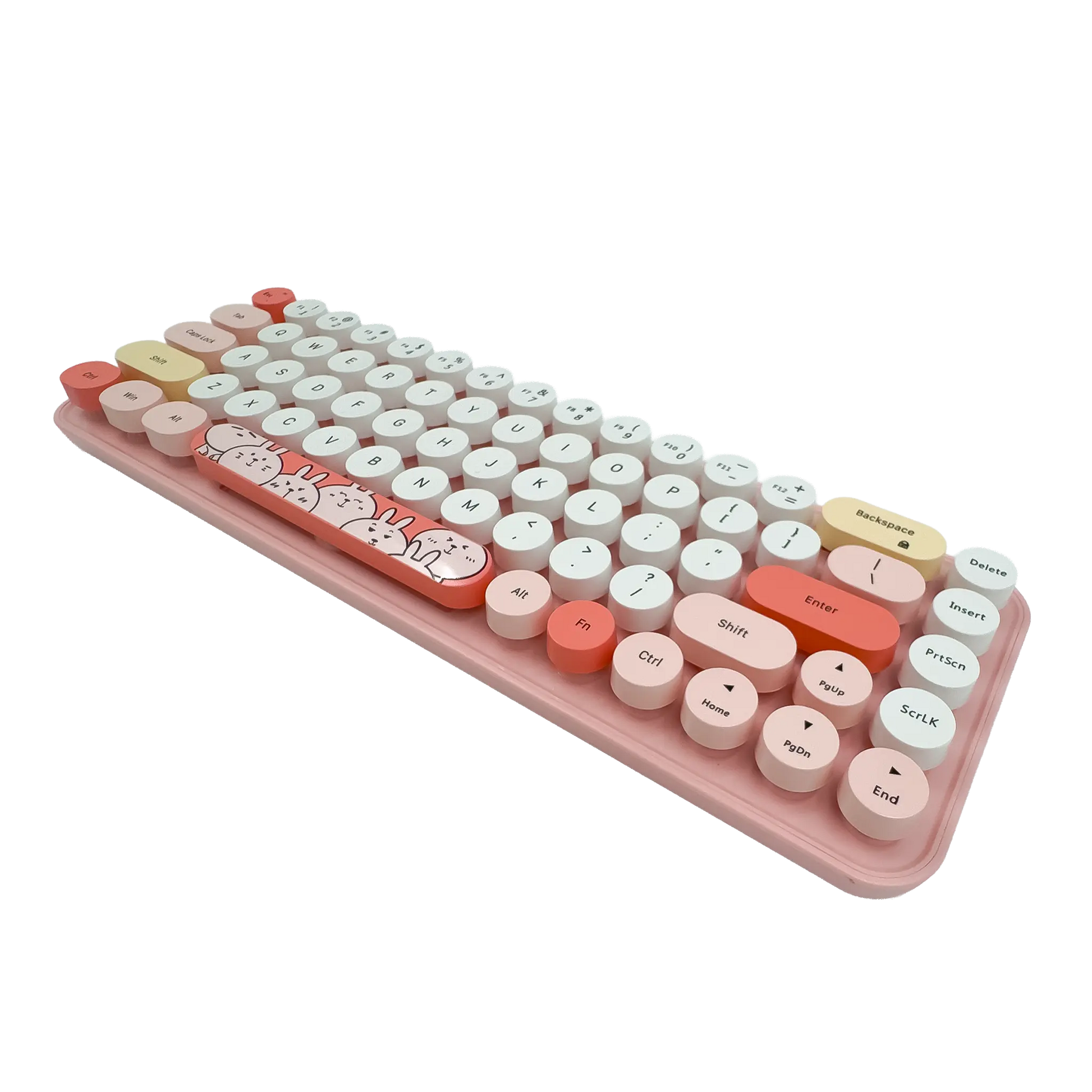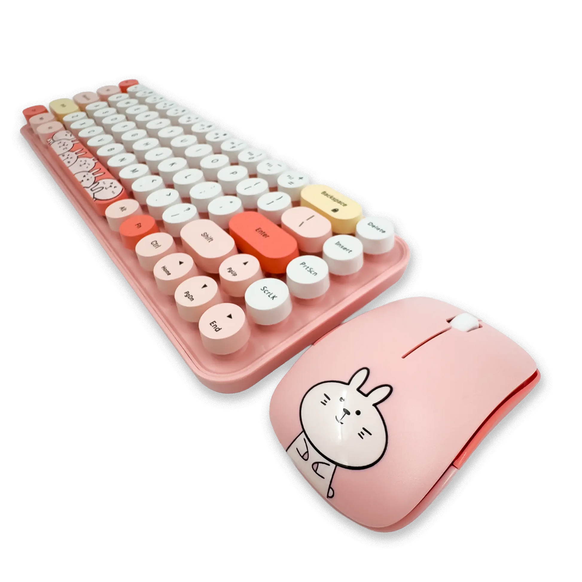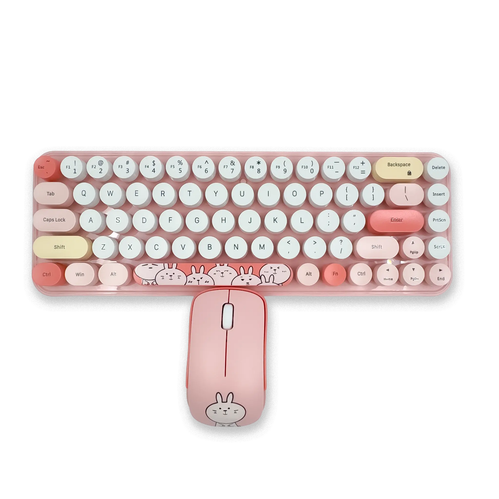 Estilo Retro y Diseño Kawaii: Teclas redondas que imitan la estética de una máquina de escribir y un ratón ligero con diseño animado (pequeño y portátil), ideal para darle un toque divertido y elegante a tu setup.