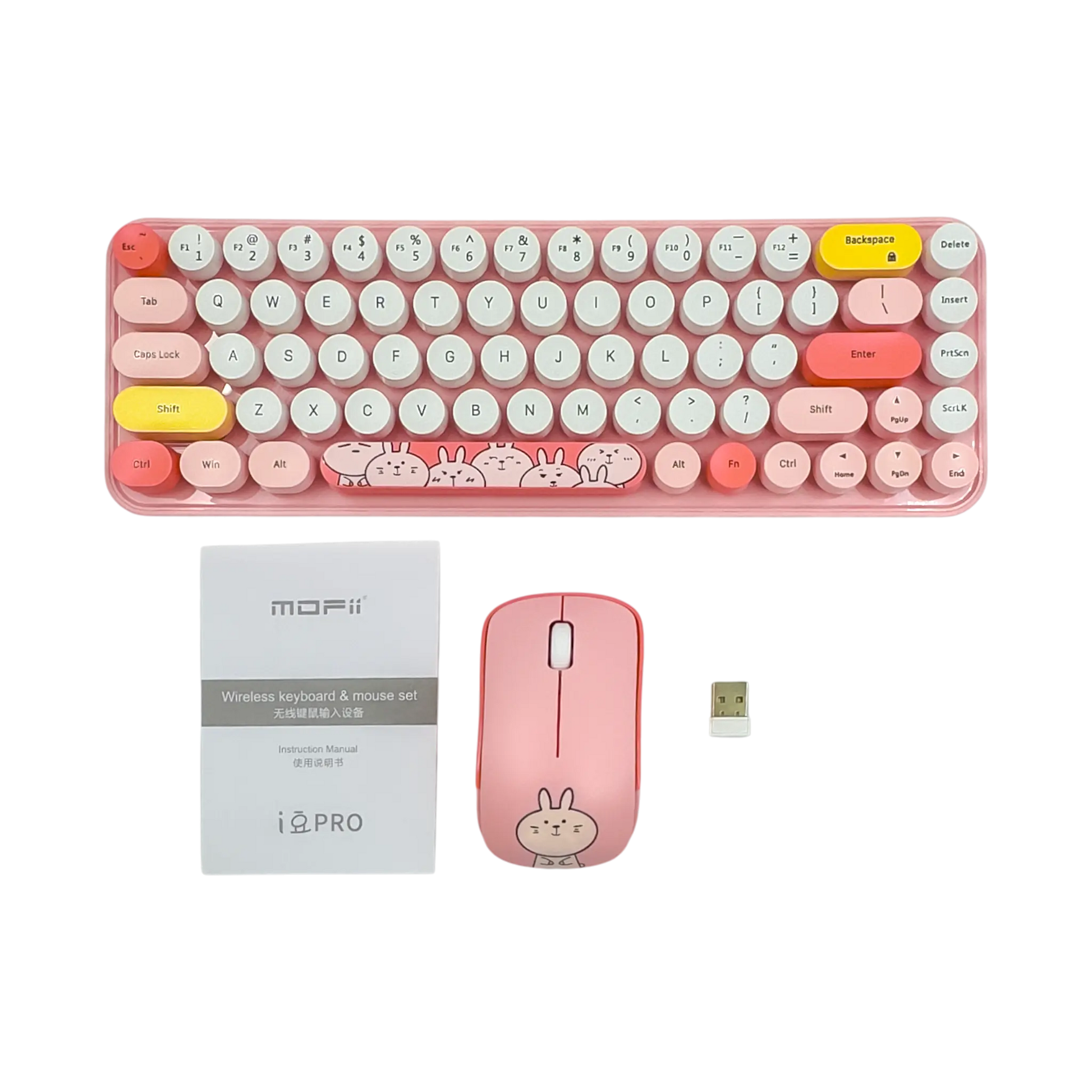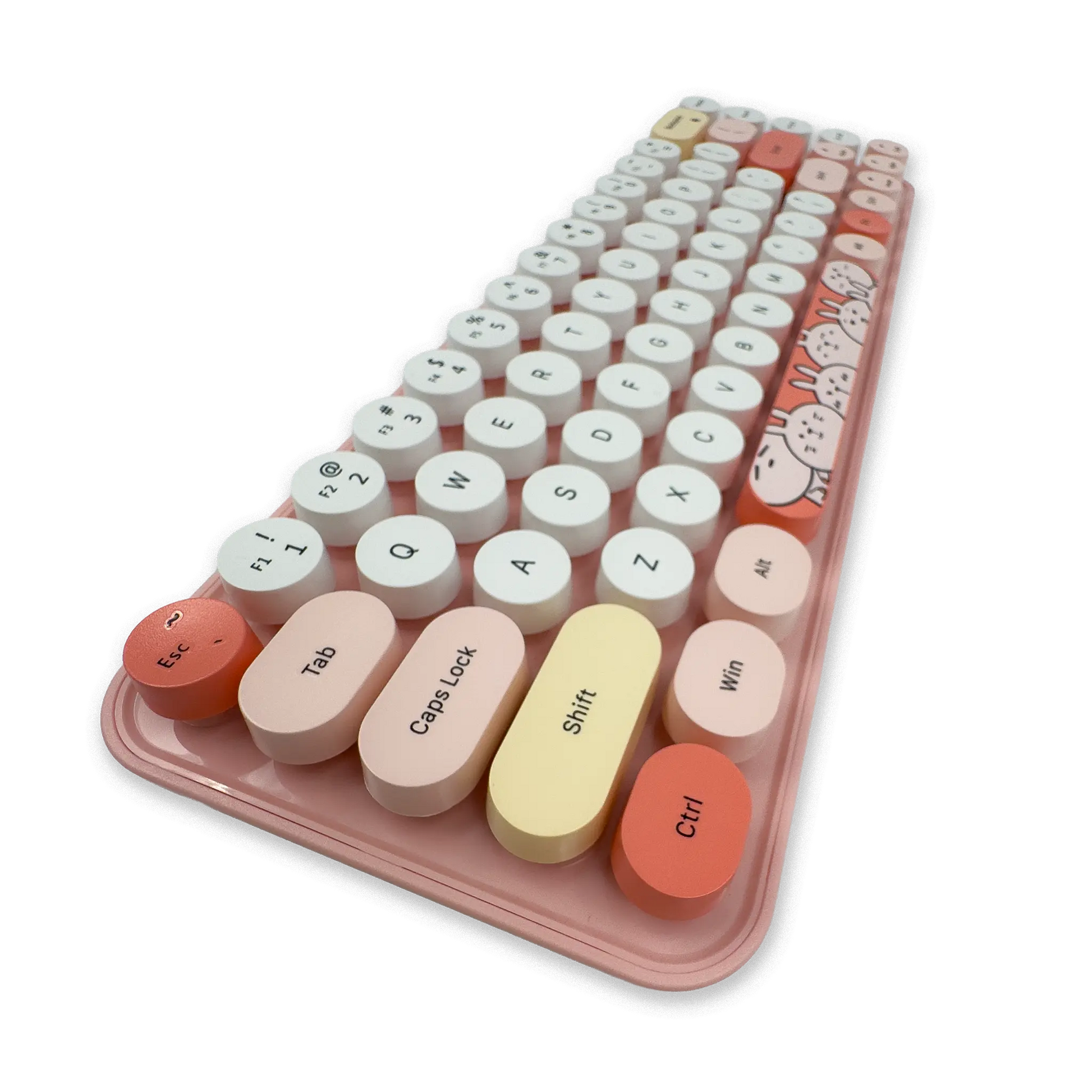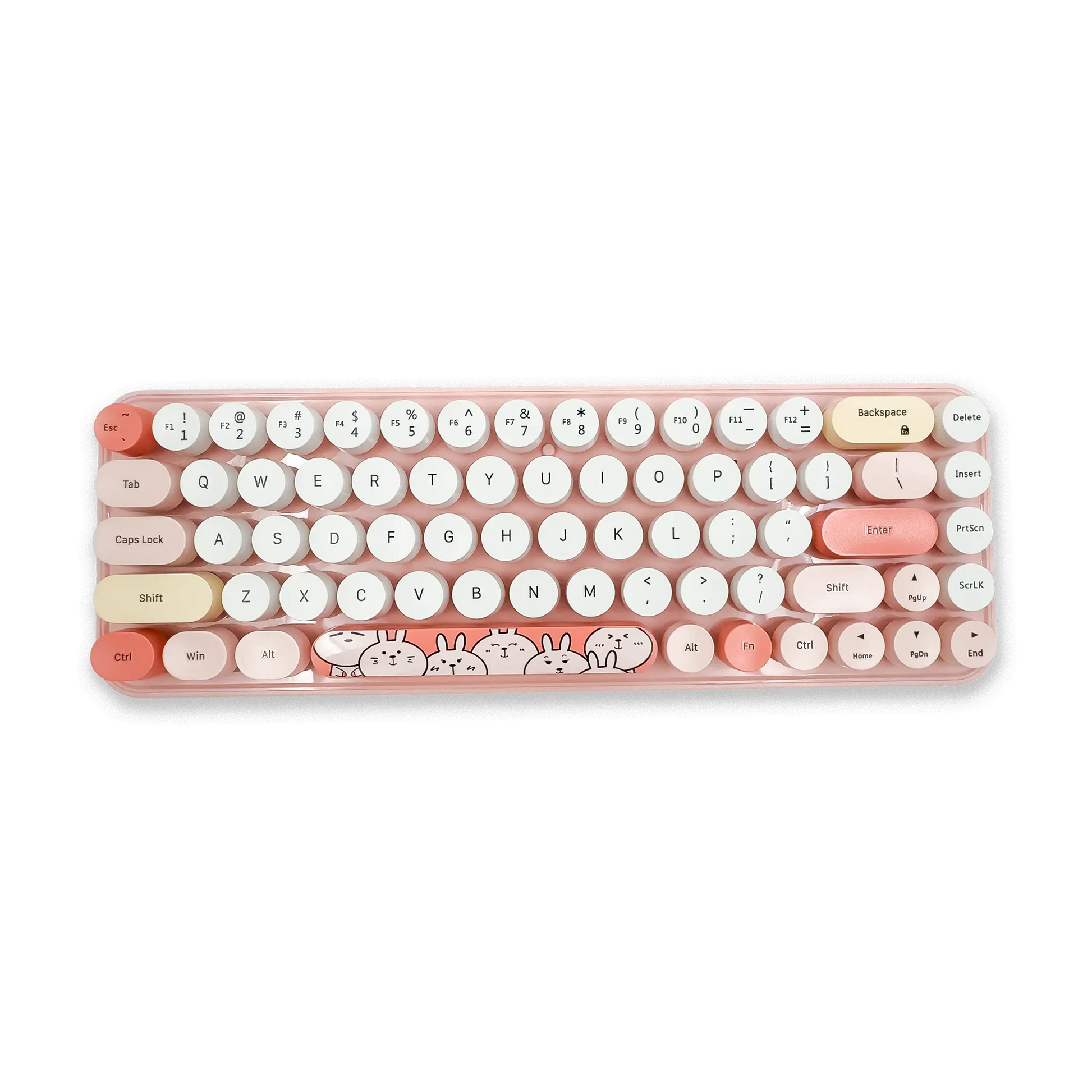 Estilo Retro y Diseño Kawaii: Teclas redondas que imitan la estética de una máquina de escribir y un ratón ligero con diseño animado (pequeño y portátil), ideal para darle un toque divertido y elegante a tu setup.