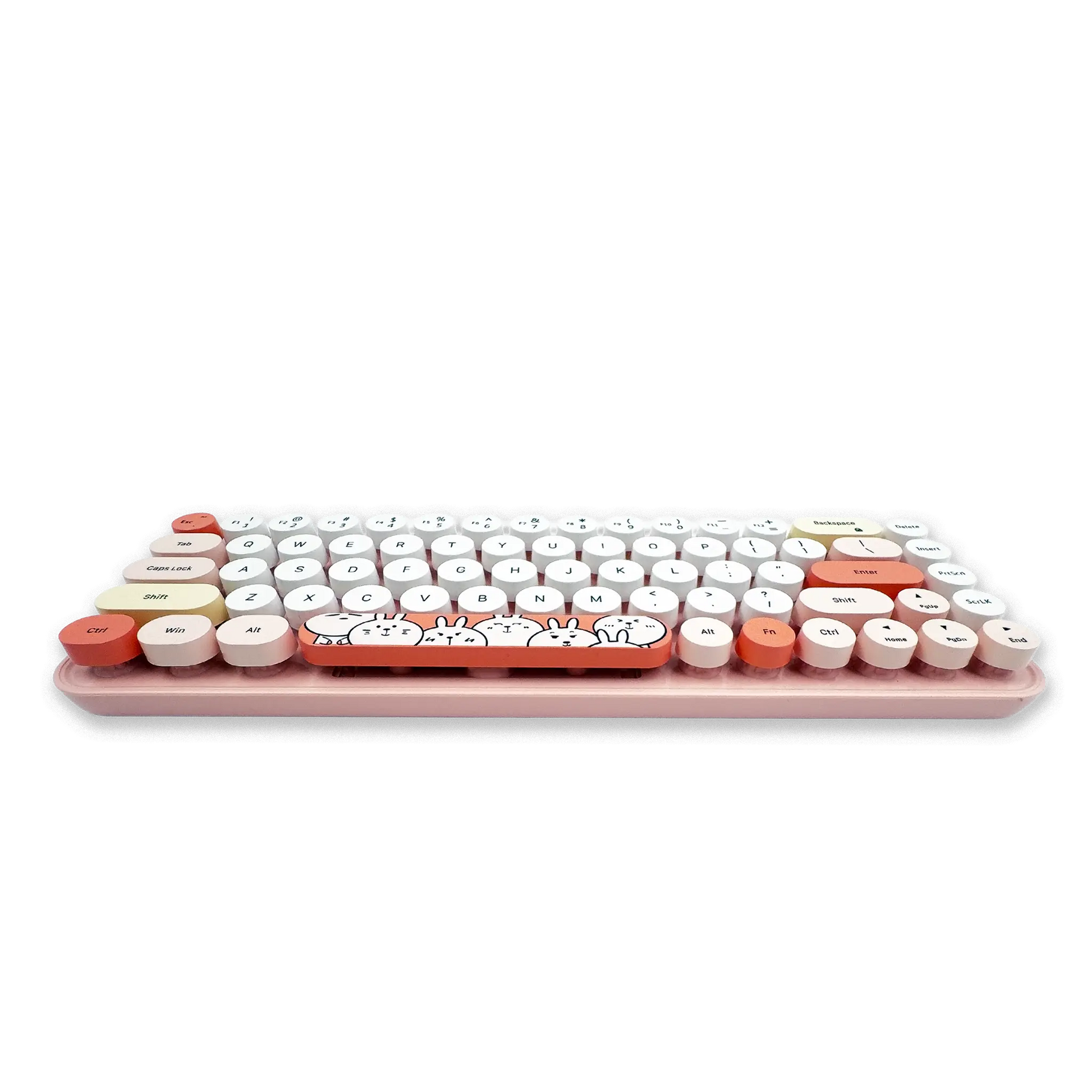 Su diseño compacto de 84 teclas con Round Keycaps (teclas redondas) tipo máquina de escribir, se complementa con un ratón silencioso con diseño Kawaii (animado). Disponible en Azul, Rosado y Morado, este combo inalámbrico de 2.4 G transformará tu espacio de trabajo.