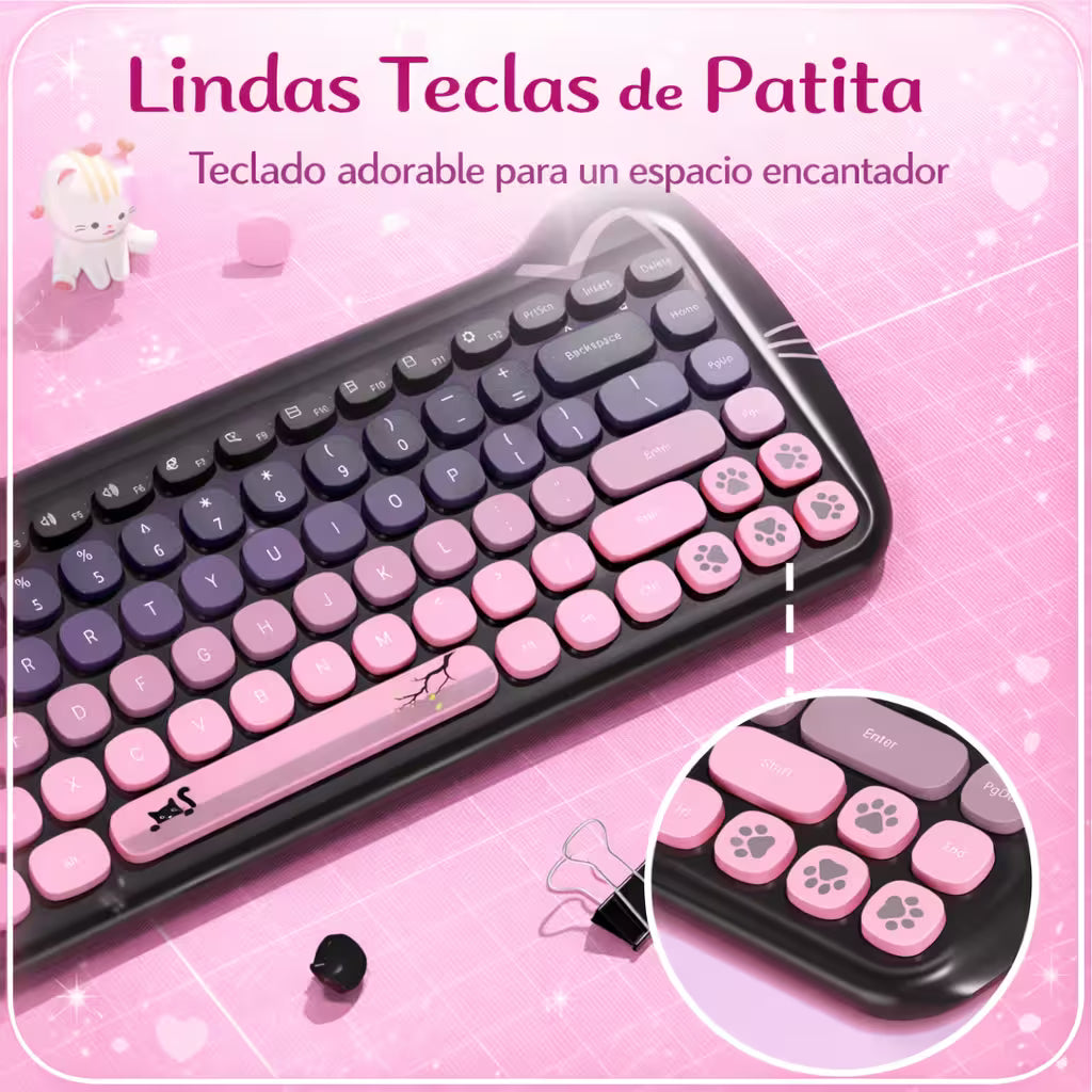 Este combo no solo destaca por su encantador diseño inspirado en gatitos, sino por su rendimiento técnico superior. Es la herramienta ideal para quienes buscan un equipo periférico ligero, silencioso y altamente funcional para su PC o portátil.