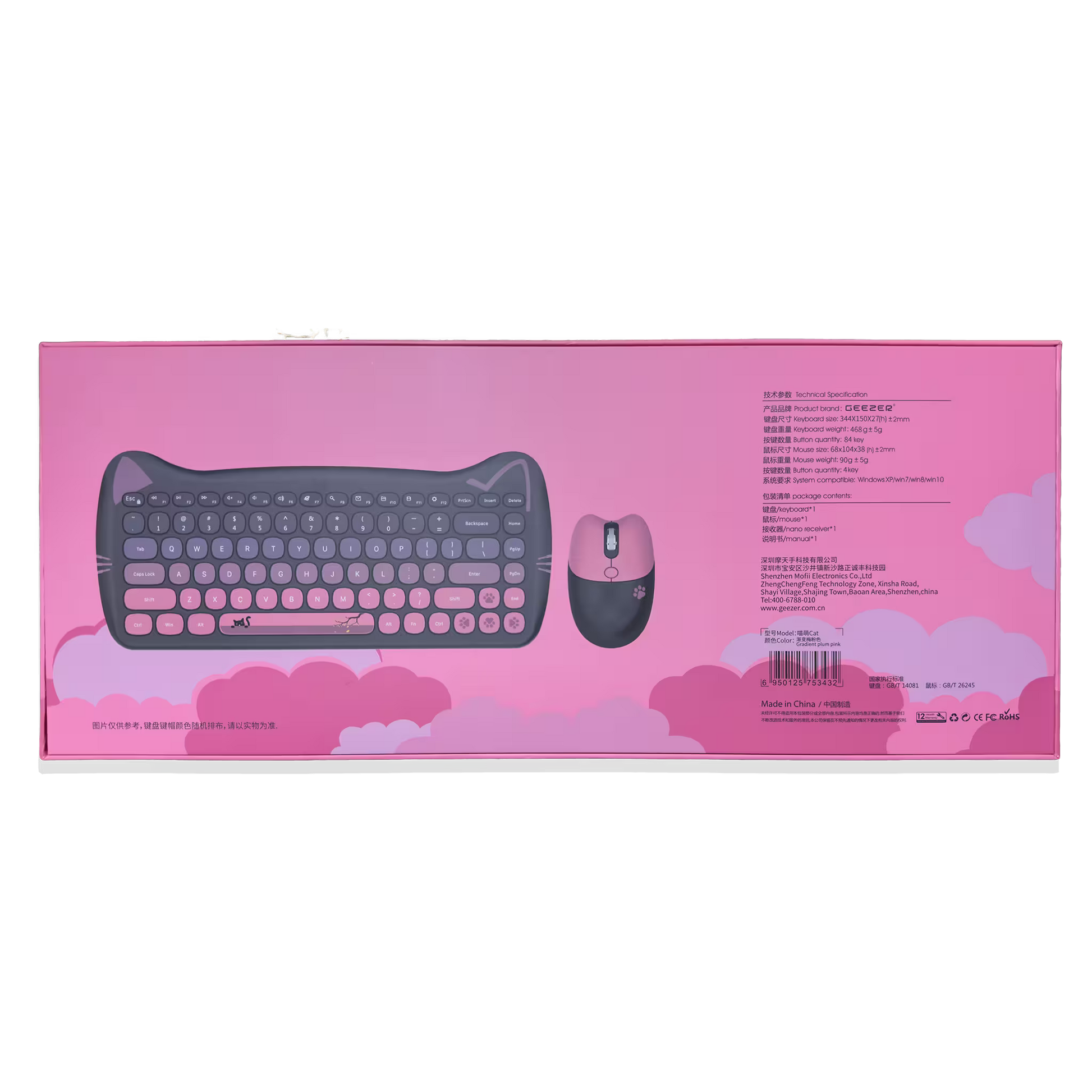 Combo Teclado Mouse Inalámbrico GEEZER Cat Series - 84 Teclas 2.4G USB Diseño Gatito