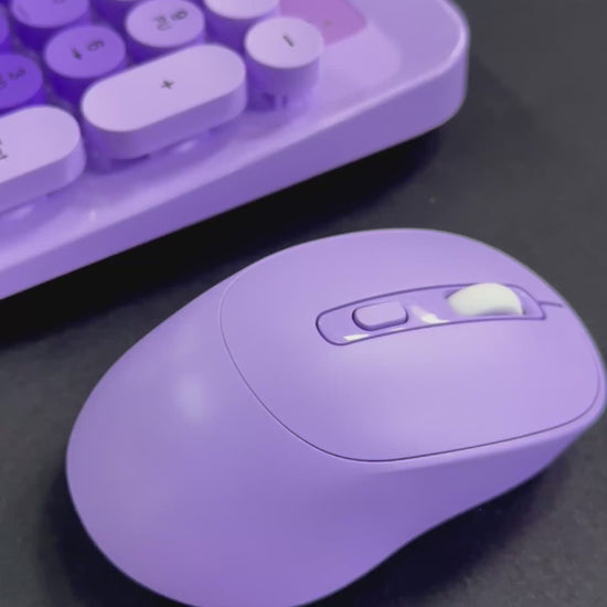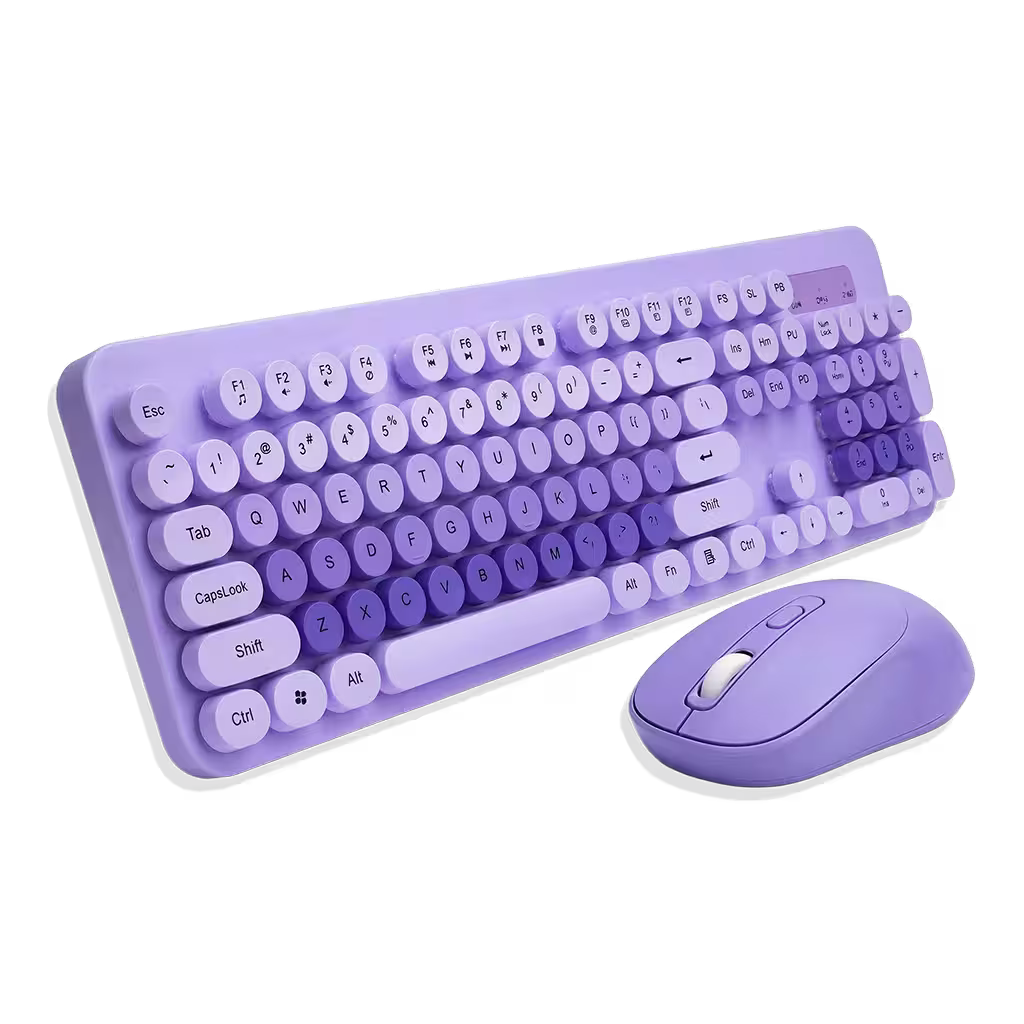 Combo inalámbrico completo y funcional, perfecto para oficina, trabajo desde casa o uso diario. Con 104 teclas de tamaño completo, conexión 2.4 GHz confiable y diseño en color morado, este conjunto ofrece comodidad, estilo y rendimiento sin cables.