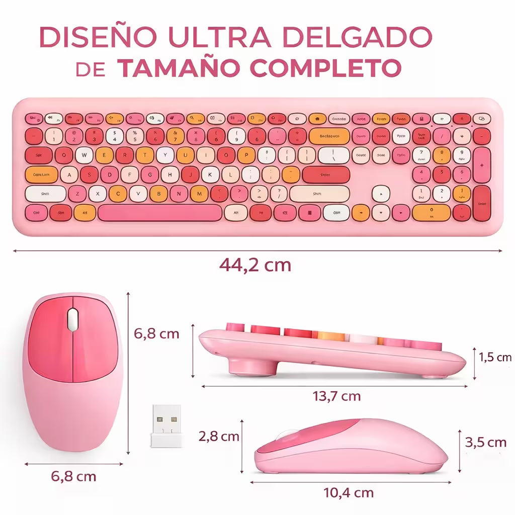 Diseño moderno y colorido que combina funcionalidad, comodidad y estilo. Este combo inalámbrico es perfecto para quienes buscan un equipo periférico silencioso, ergonómico y altamente funcional para su PC, laptop o tablet.