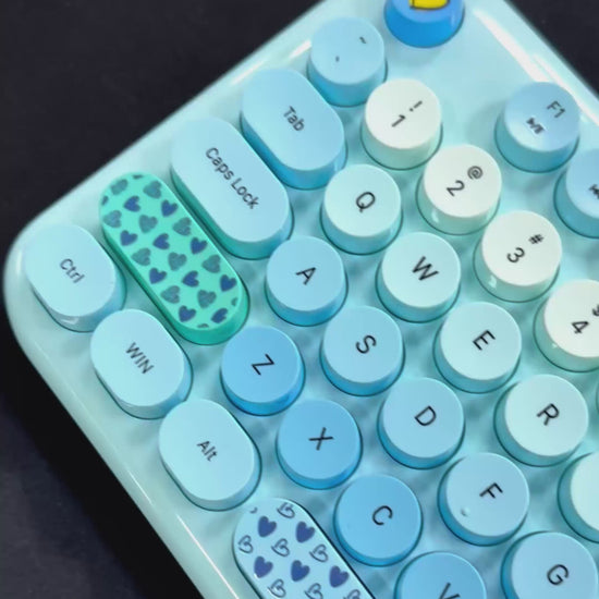 - 💙 Diseño Retro Lovely en Azul: Teclas redondas vintage en tono azul vibrante — fresco, moderno y lleno de personalidad para cualquier escritorio