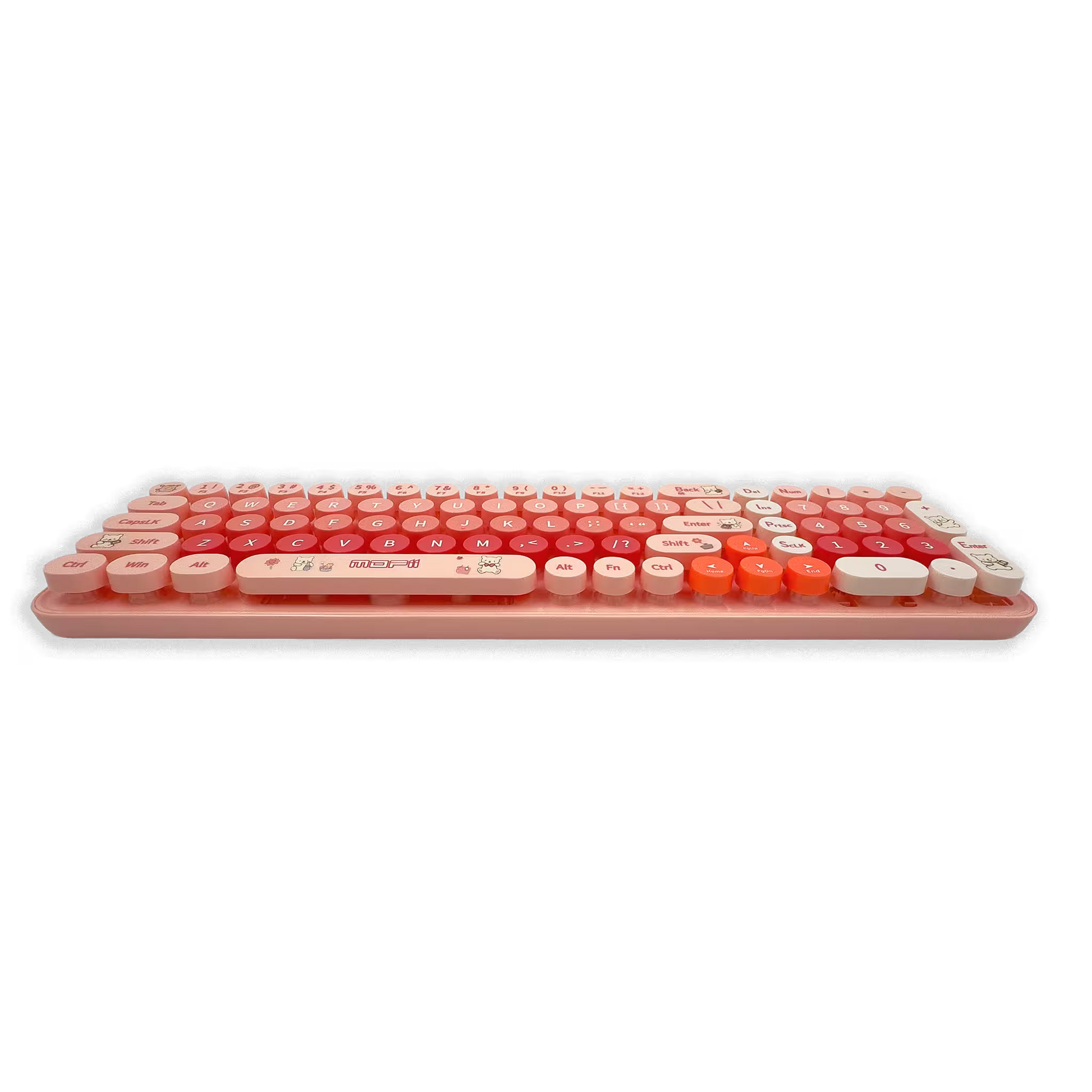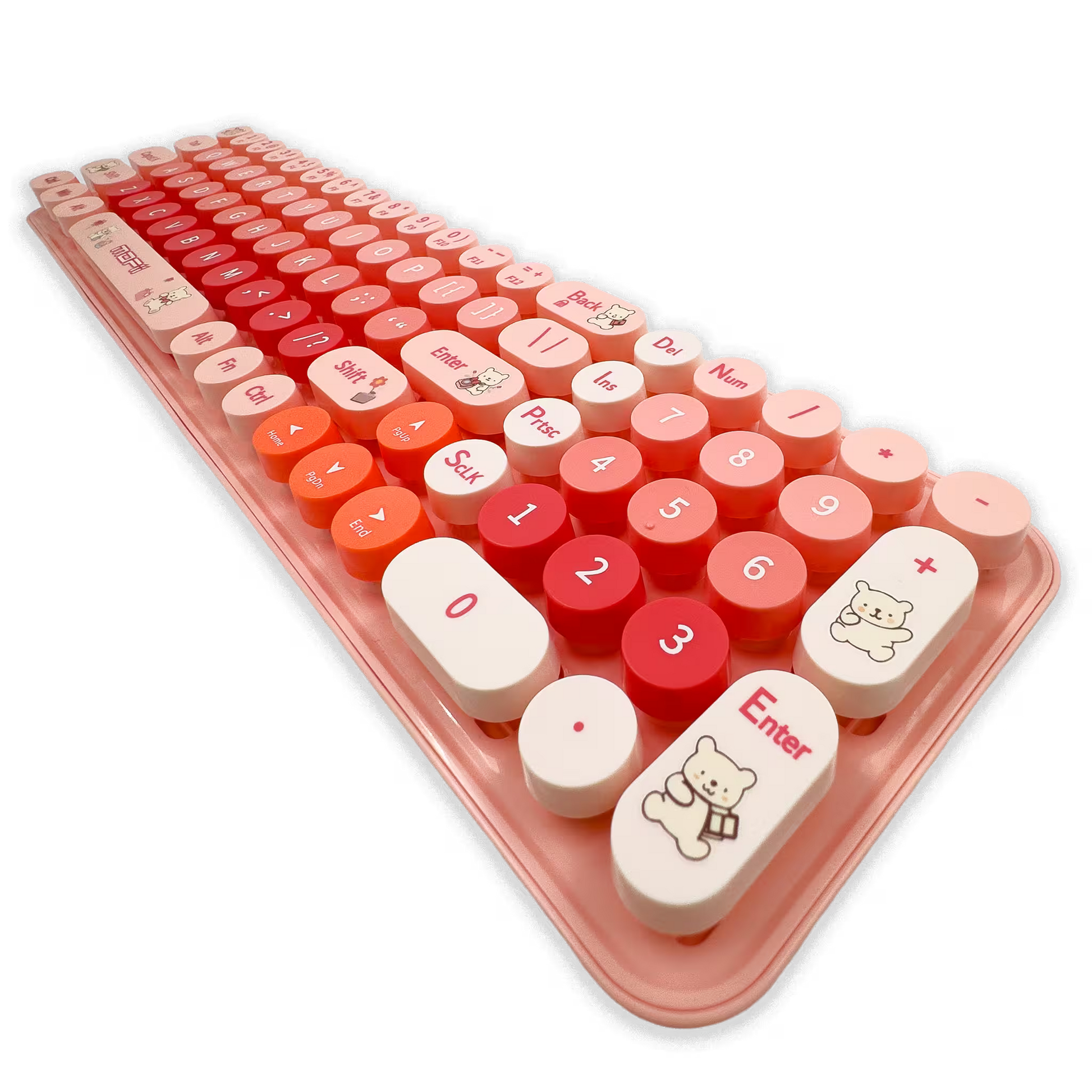 Sus teclas redondas y coloridas al estilo máquina de escribir y el mouse a juego lo convierten en un accesorio de moda, ideal para darle personalidad y calidez a tu setup.