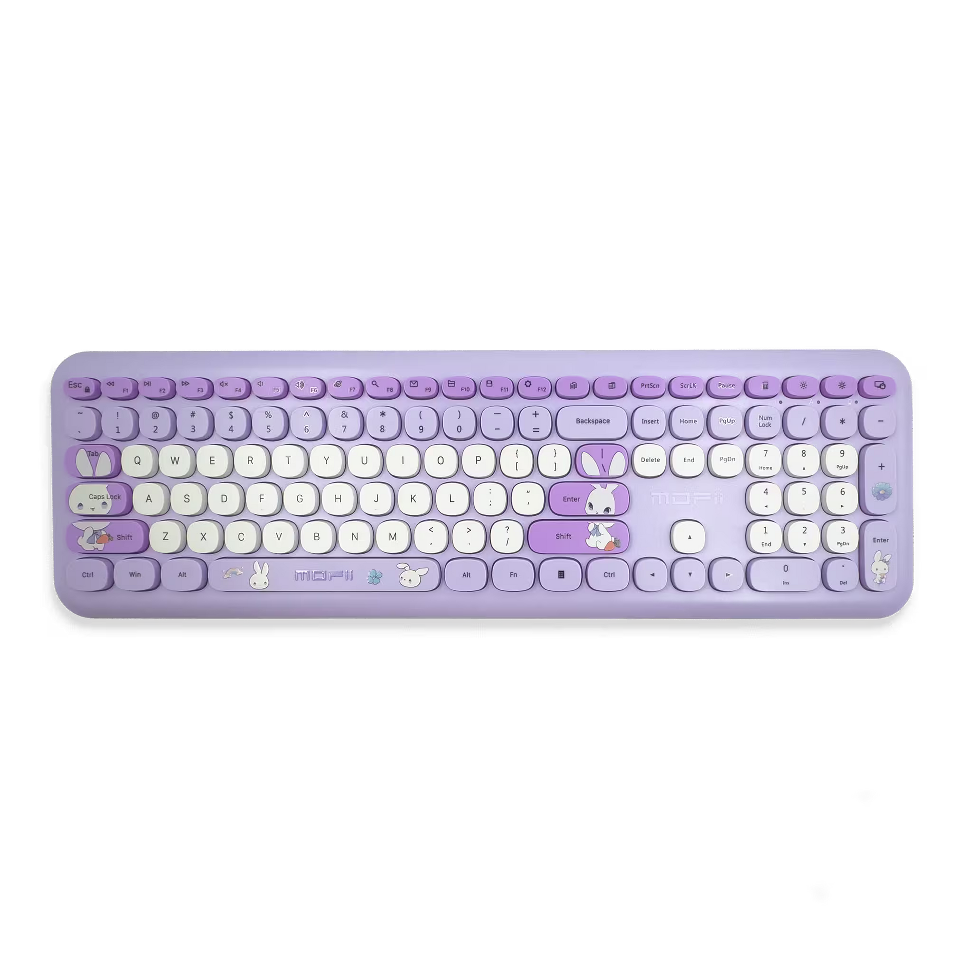 Diseño Kawaii Exclusivo: Diseño de conejo en el empaque y teclado, con teclas redondas retro en un vibrante color Azul (y otros colores disponibles).