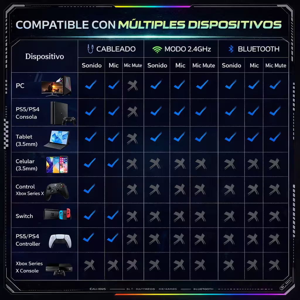 - PC y Laptops (2.4GHz, Bluetooth, Cable)