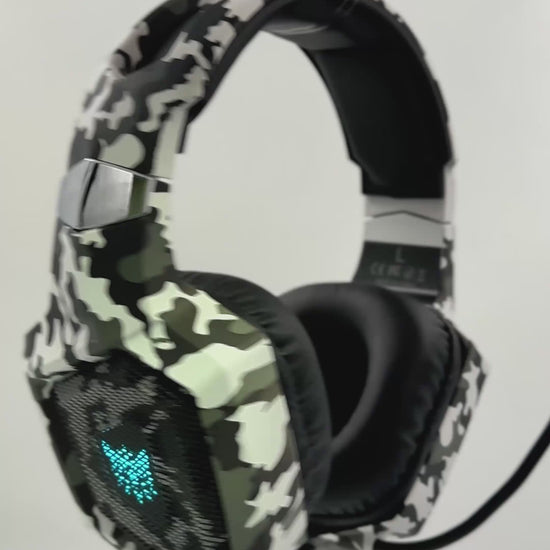 Diadema Gamer ONIKUMA K8 LED RGB Blanca Camuflada - Micrófono 360°