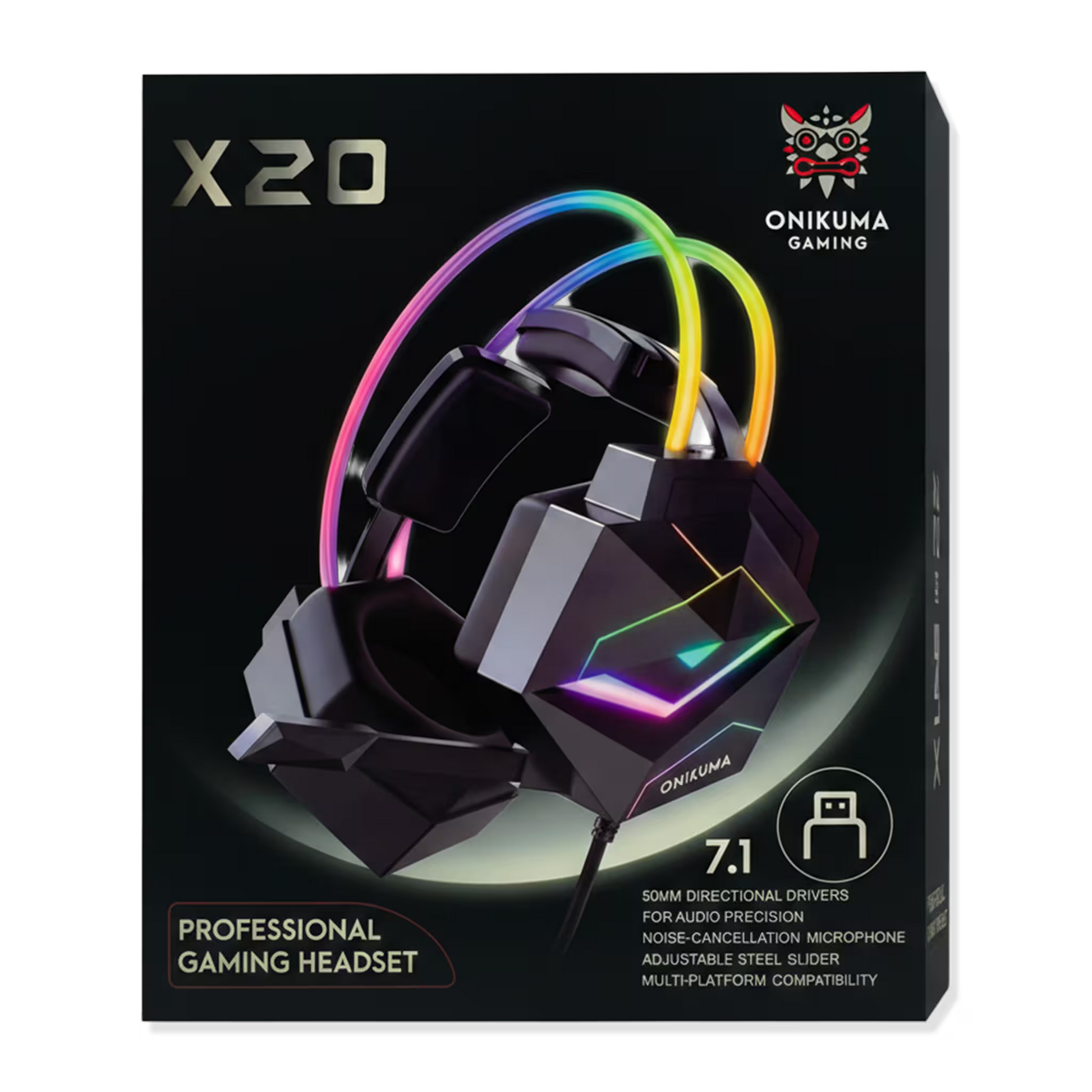 Diadema Gamer ONIKUMA X20 RGB USB - Sonido Envolvente 7.1 Drivers 50mm