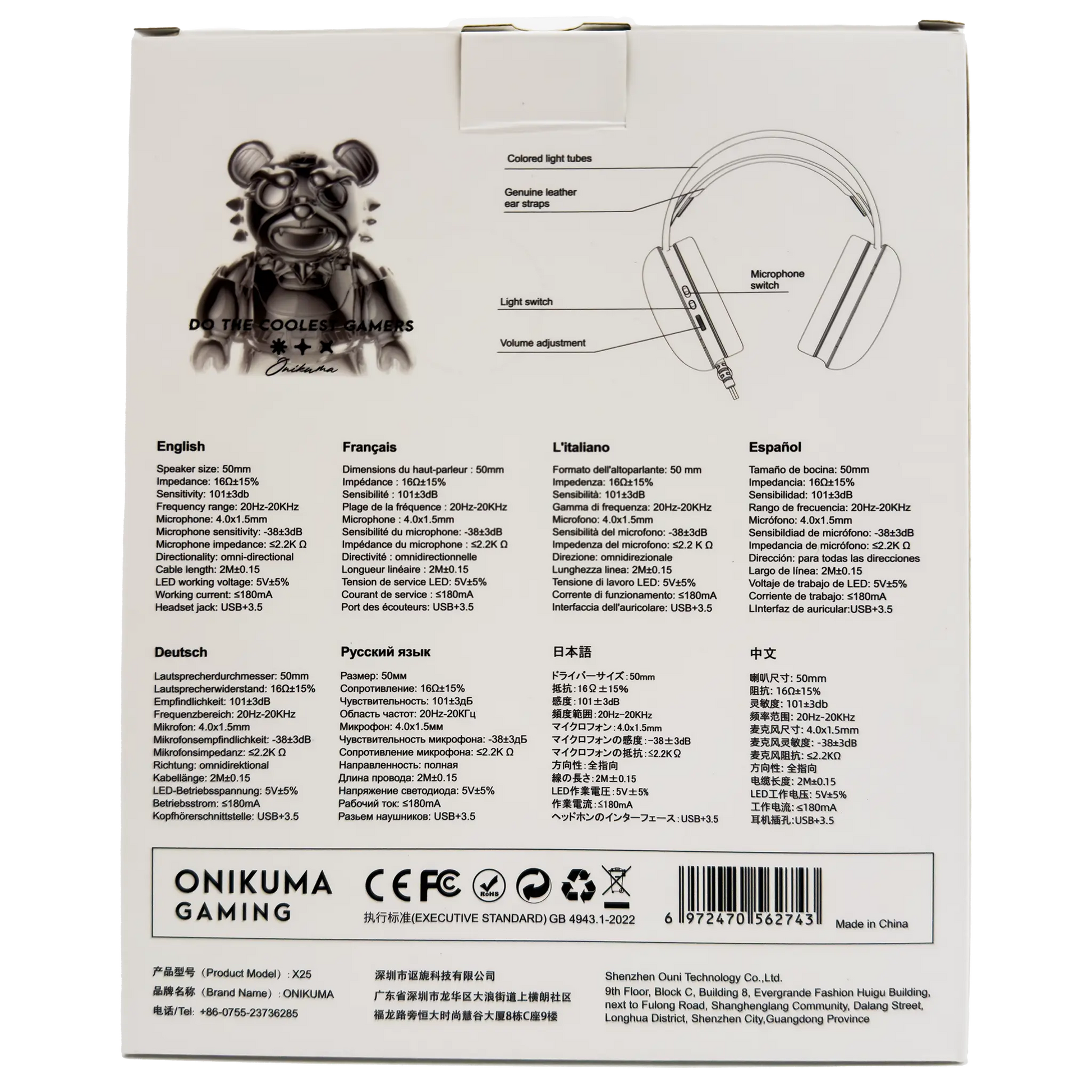 La diadema ONIKUMA X25 es multiplataforma y se conecta mediante un conector de audio de 3.5 mm para el sonido y un conector USB para la alimentación de las luces RGB. Es compatible con una amplia variedad de dispositivos, incluyendo: