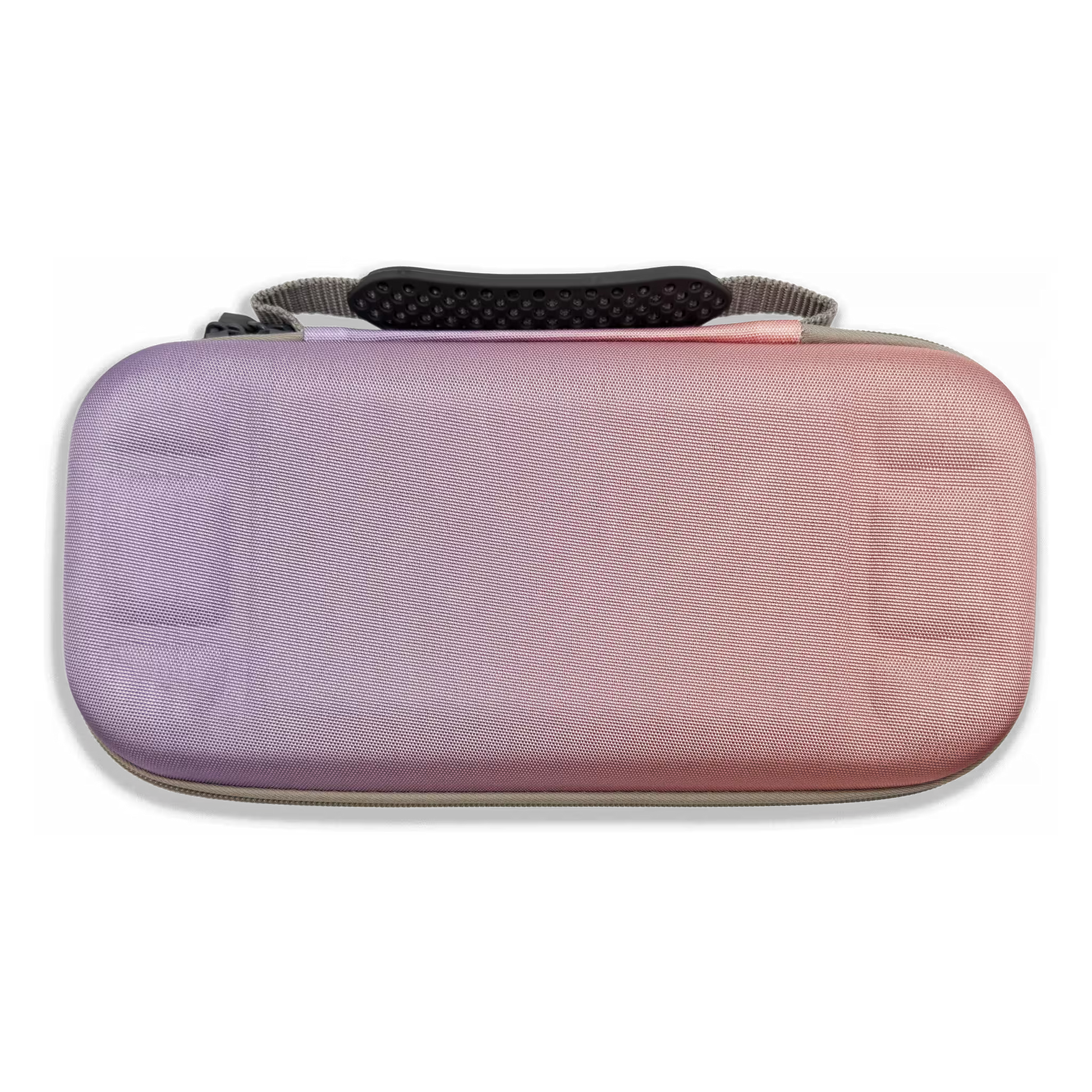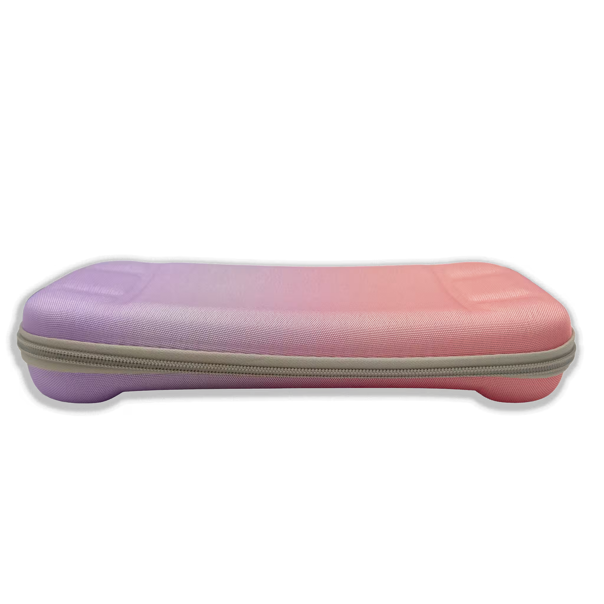 Este estuche de transporte combina una carcasa externa resistente con un diseño gradiente bicolor (Lila a Rosa) que te hará destacar.