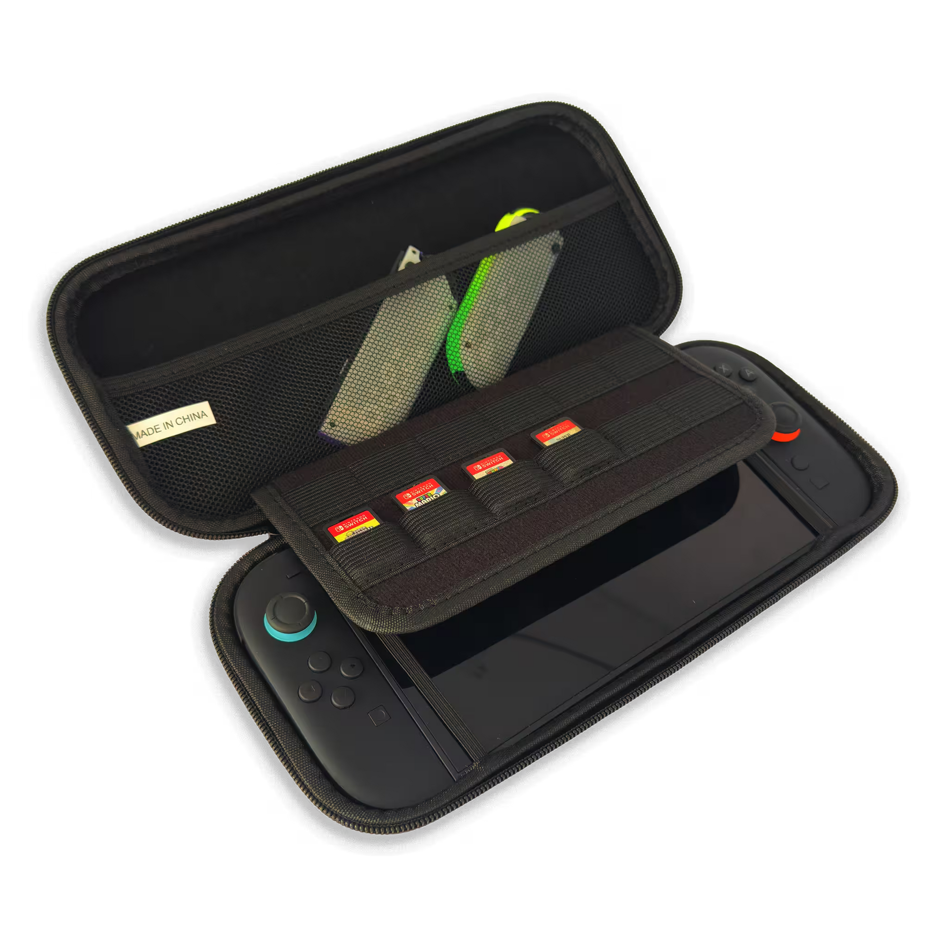 Bolsillo de Malla: Incluye un bolsillo de malla con cremallera en la tapa superior, perfecto para guardar accesorios más grandes como cables de carga, Joy-Cons adicionales o auriculares.