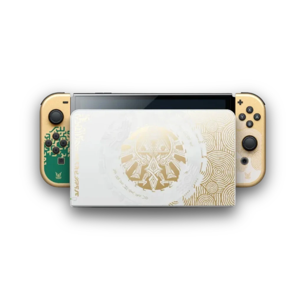 No es solo una consola, es una pieza de colección diseñada para quienes buscan exclusividad y pasión por los videojuegos. Inspirada en el legendario universo de Zelda, esta edición presenta un diseño único con detalles dorados, verdes y blancos que adornan los Joy-Con y la base, representando los símbolos icónicos de Hyrule.