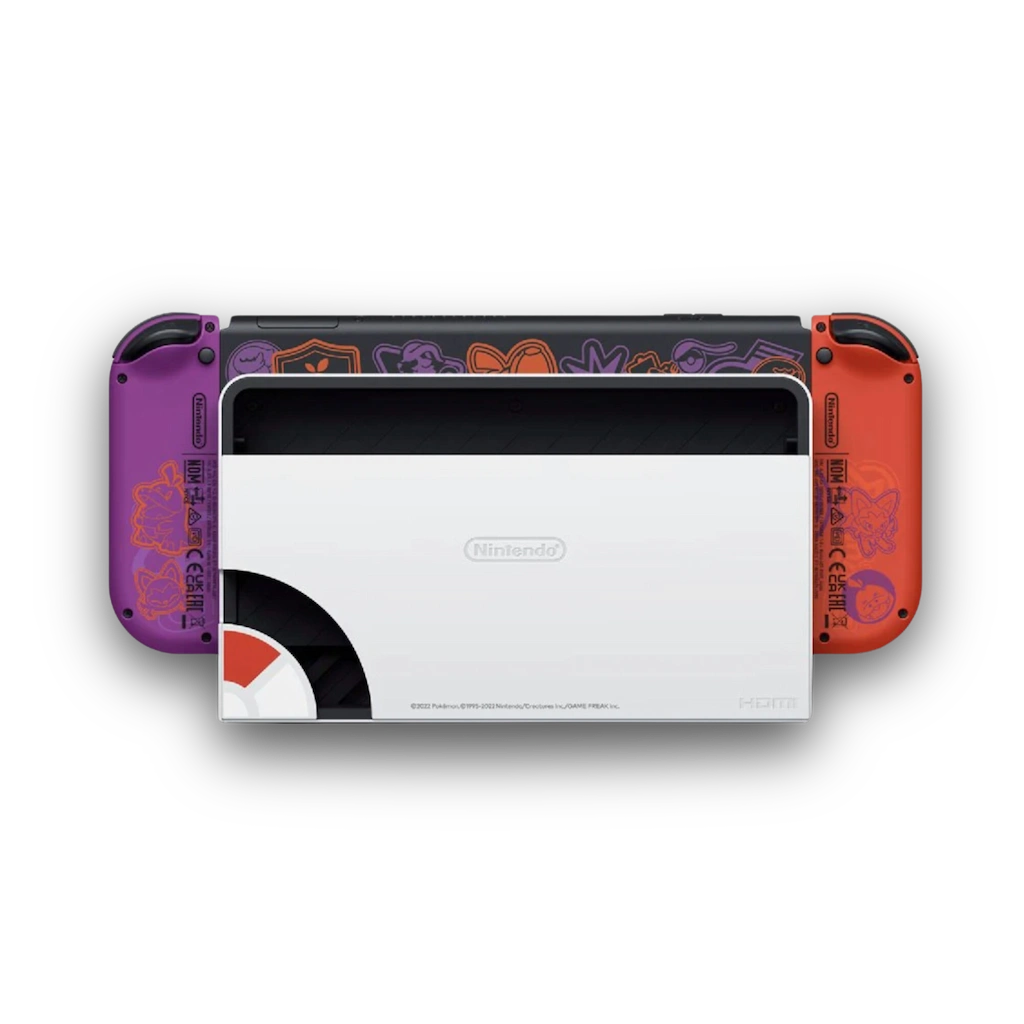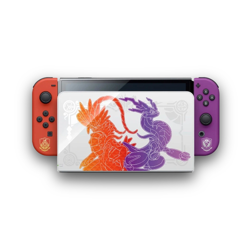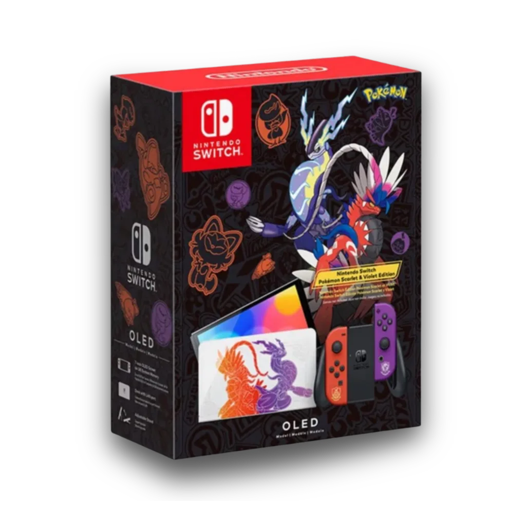 La Nintendo Switch OLED Edición Especial Pokémon Púrpura y Escarlata es el sueño de todo fan de Pokémon hecho realidad. Esta consola no solo ofrece la ya conocida pantalla OLED de 7 pulgadas, con colores más vibrantes y detalles impresionantes, sino que también destaca por su diseño exclusivo inspirado en los legendarios Koraidon y Miraidon, junto con detalles únicos en púrpura y escarlata en los Joy-Con y la base.