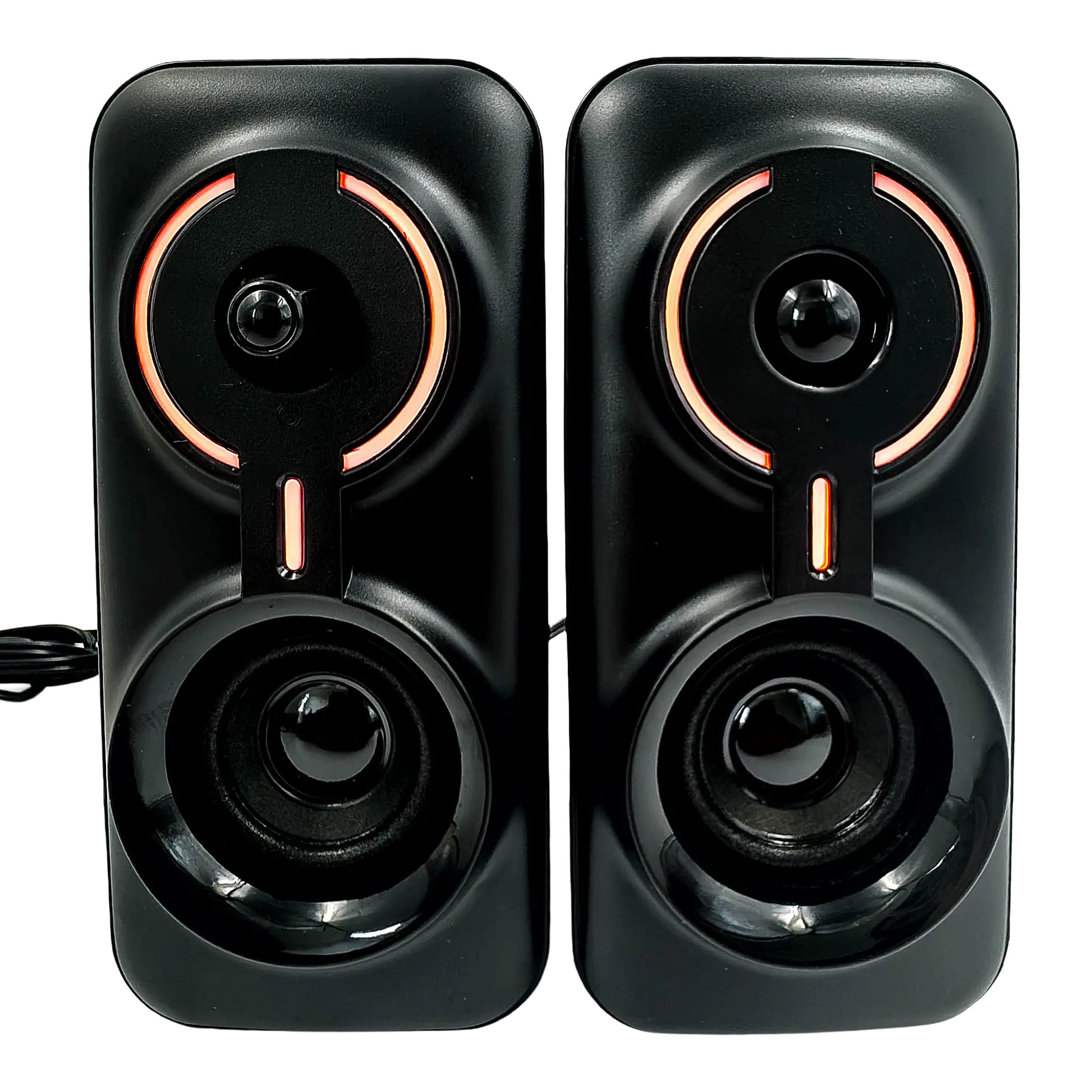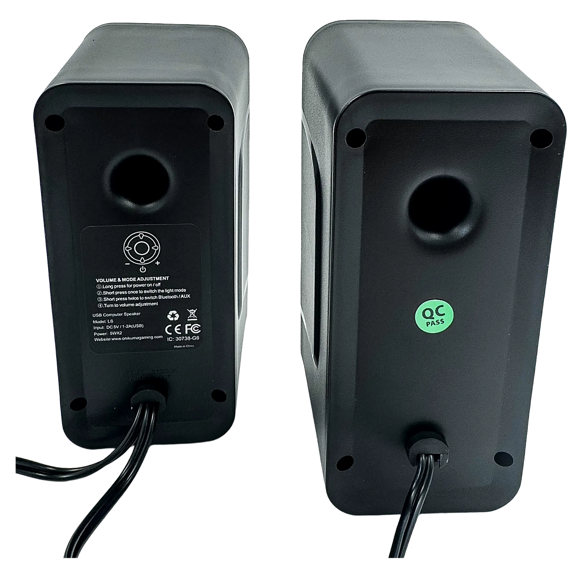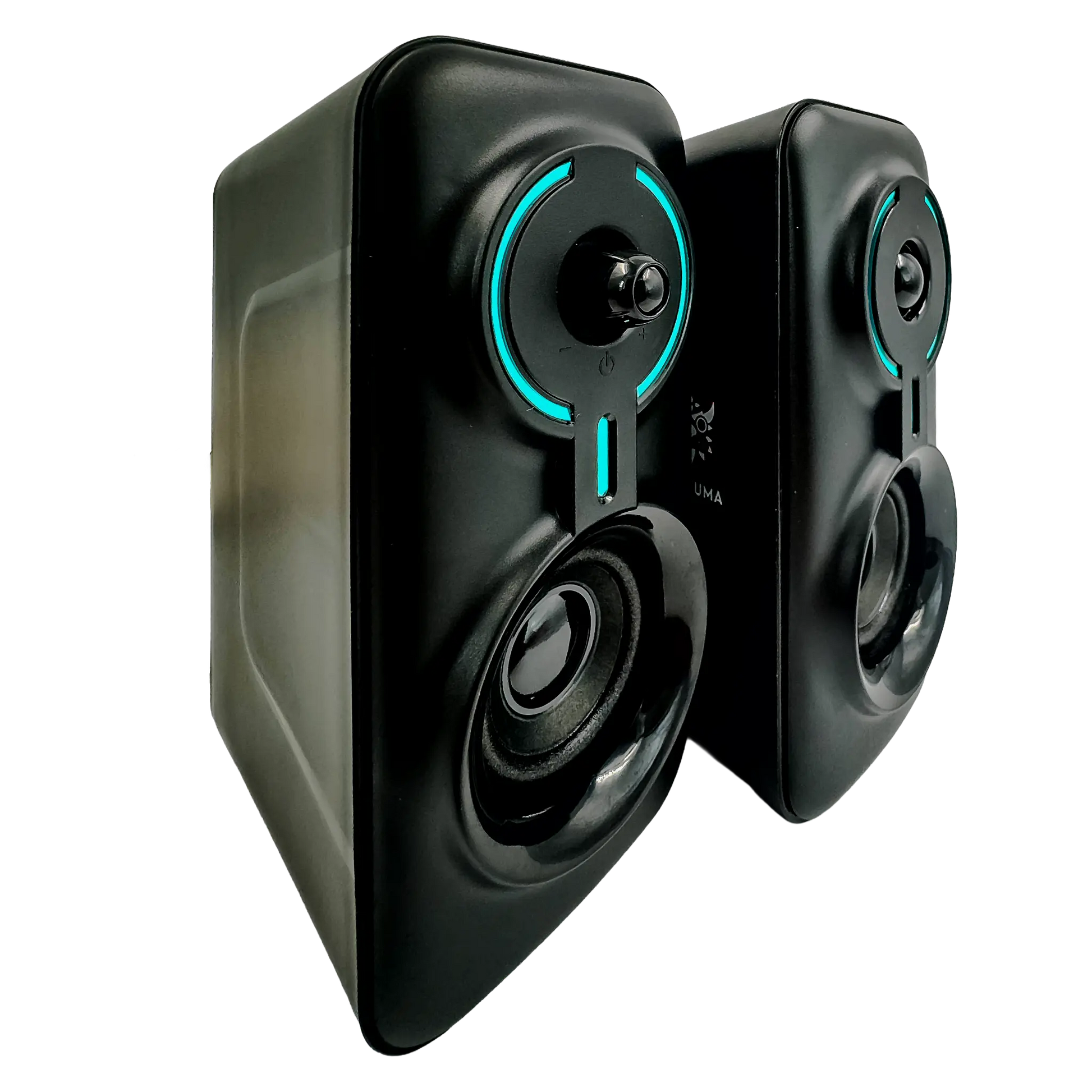 - Controles Prácticos: Cuentan con un control de volumen frontal de fácil acceso y un interruptor ON/OFF para manejar el encendido del equipo y las luces.