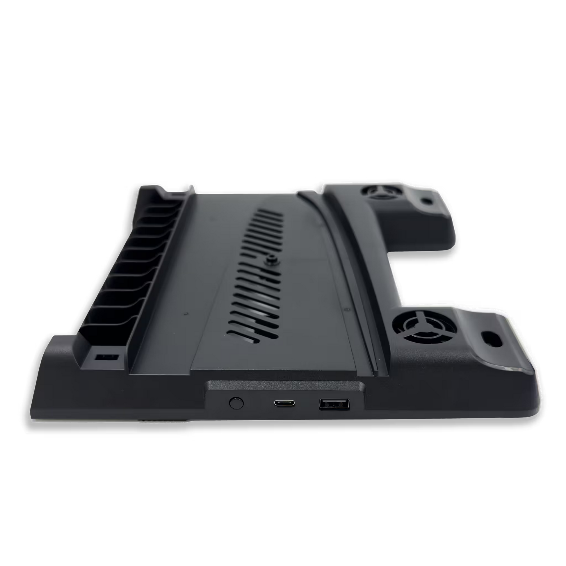 Combina un potente sistema de refrigeración con funciones de carga rápida dual y almacenamiento de juegos, optimizando el rendimiento y la organización de su estación de juego.