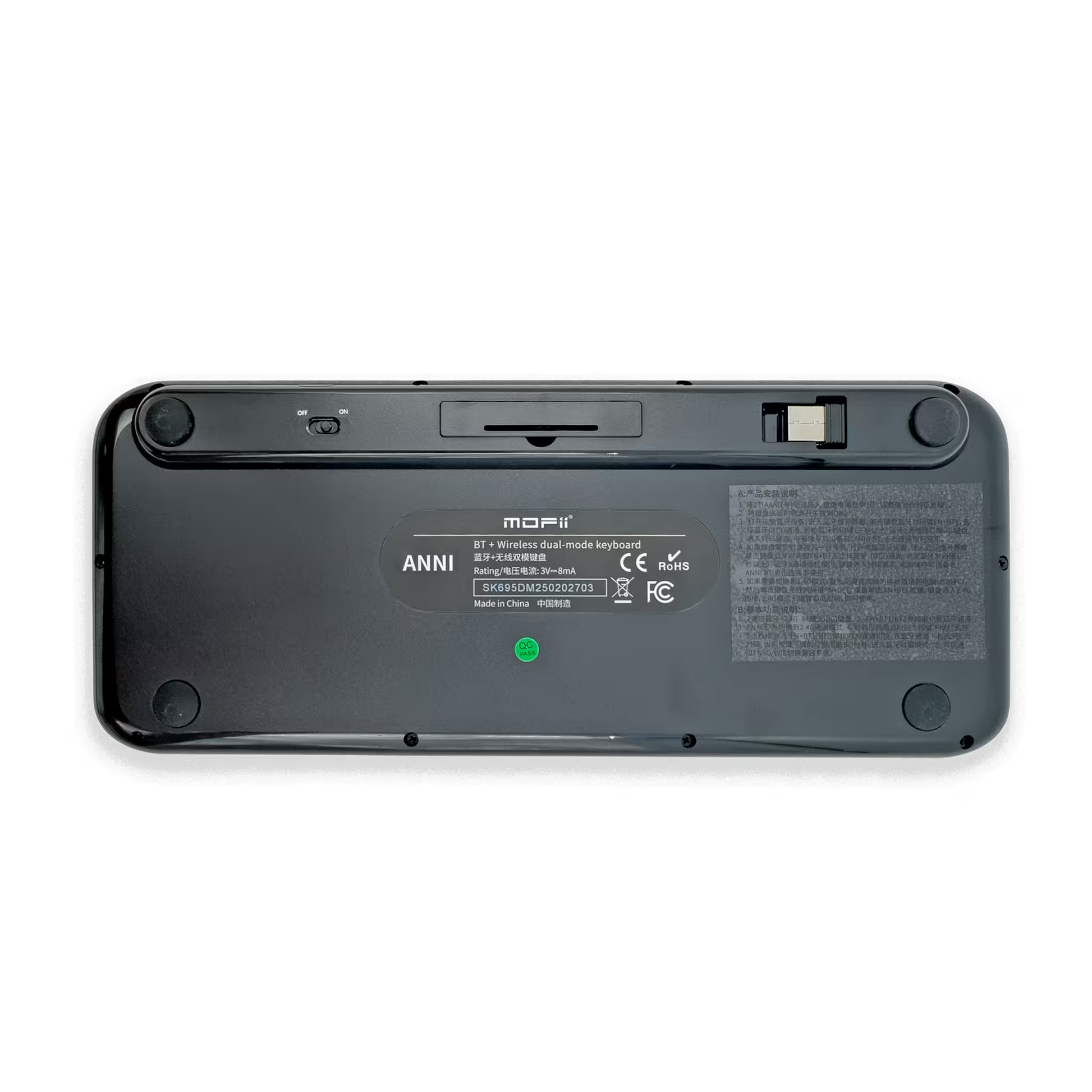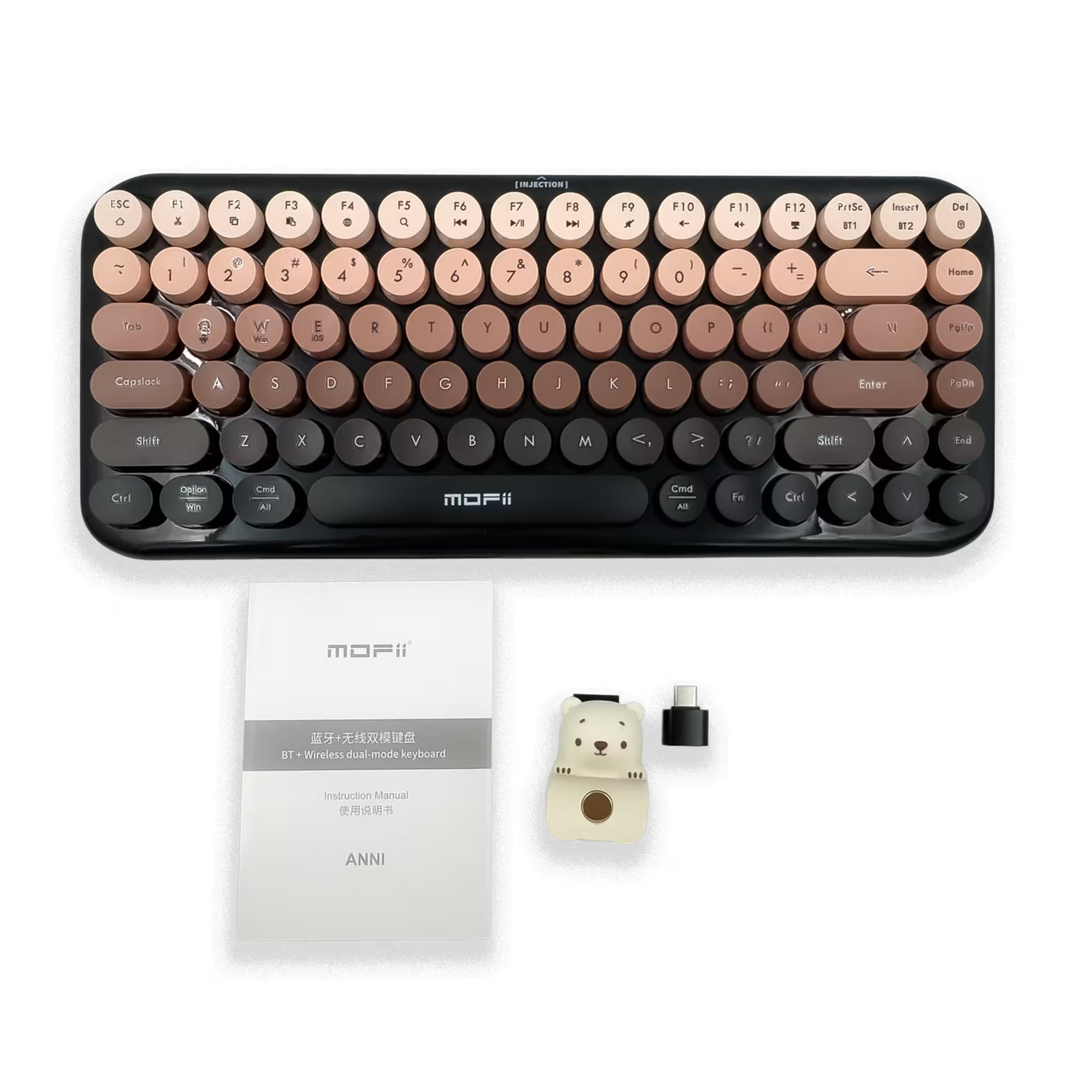El teclado MOFII ANNI es la máxima expresión de versatilidad y estilo personalizable. Este teclado de 84 teclas no solo te libera de cables, sino que te ofrece una conectividad Dual Mode (Bluetooth + 2.4 G) que te permite conectar y alternar entre TRES dispositivos distintos (PC, Mac, o Tablet)