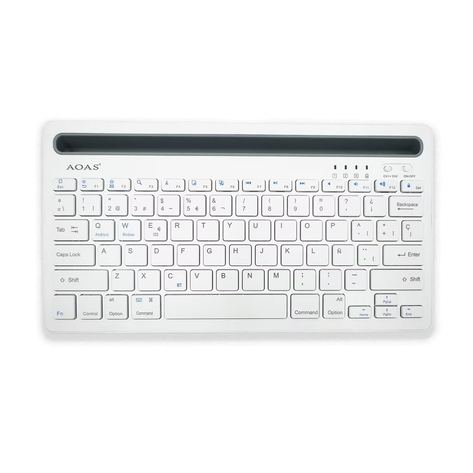 Teclado Inalámbrico Bluetooth Tipo C AOAS AS-199 | Dual Mode, Recargable y Multidispositivo para Tablet/Laptop | BLANCO