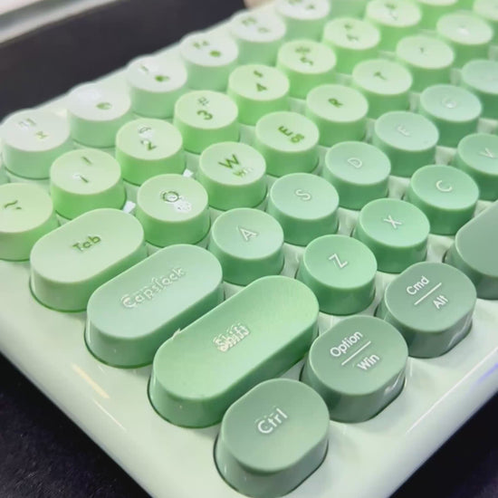 - ⌨️ 84 Teclas Redondas Retro Degradado: Patrón de color degradado único — de verde menta claro a verde oscuro profundo