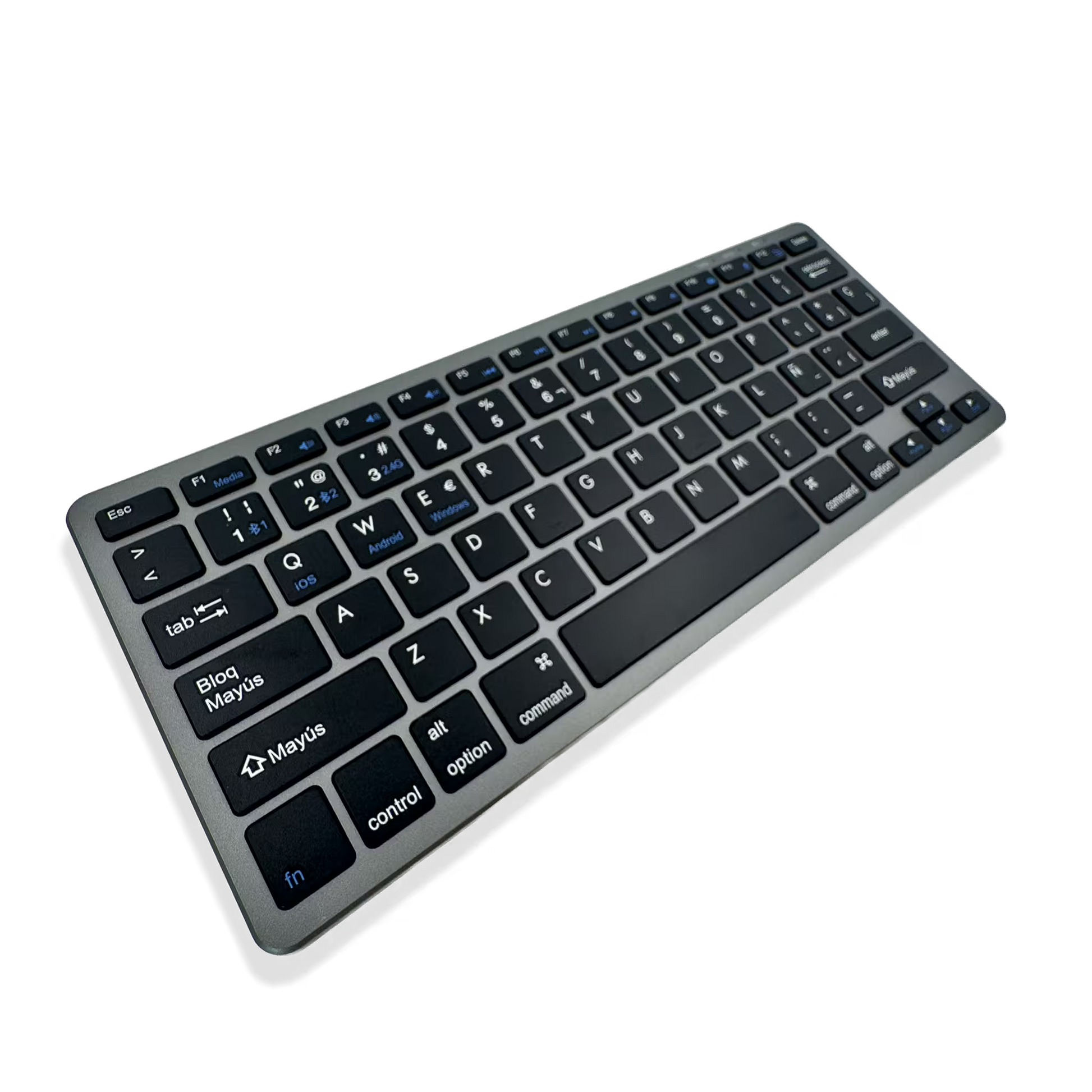FN + Q/W/E, el teclado optimiza su configuración para funcionar a la perfección con sistemas Windows, Mac OS (Apple) y Android. Es Plug and Play, lo que significa que está listo para usar desde el primer segundo - Diseño Ultradelgado: Su perfil elegante y estilizado se adapta a cualquier entorno profesional o de estudio. Las teclas de bajo perfil ofrecen una escritura rápida, cómoda y silenciosa