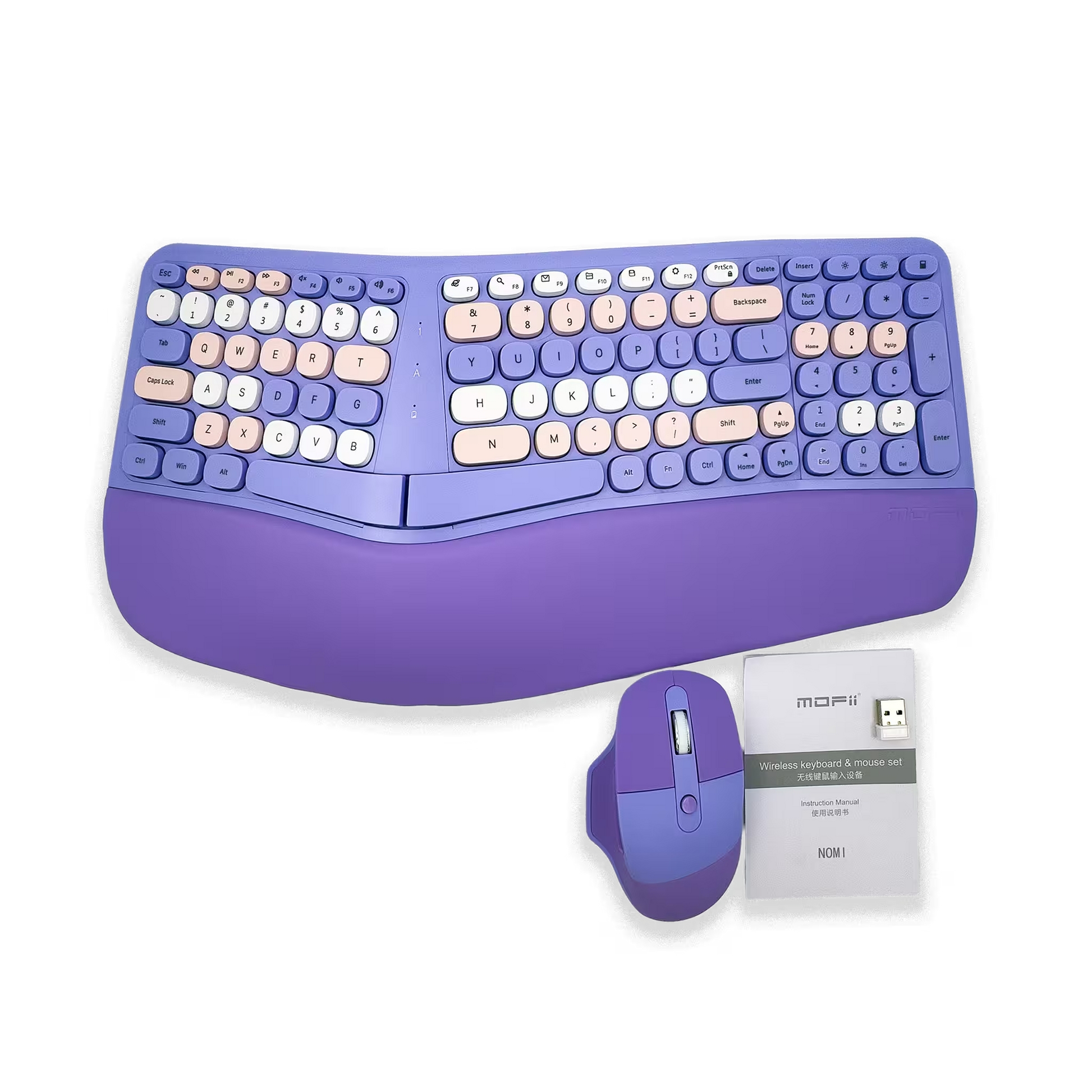 Teclado y Mouse Inalámbrico Ergonómico | Kit Mofii Retro Violeta